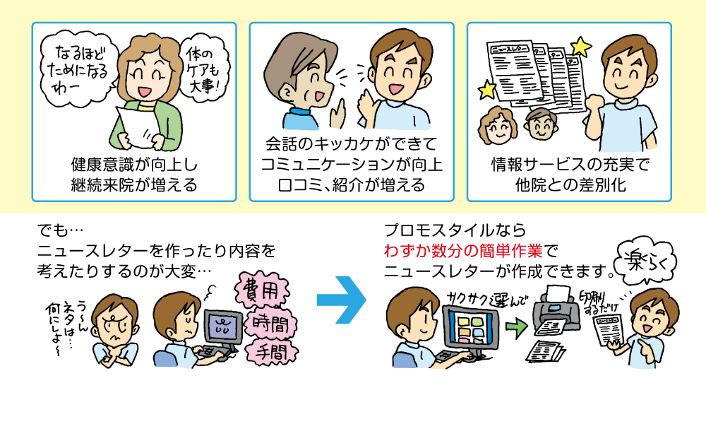 ニュースレターで情報発信することは来院者確保につながる次のような効果が期待できます。